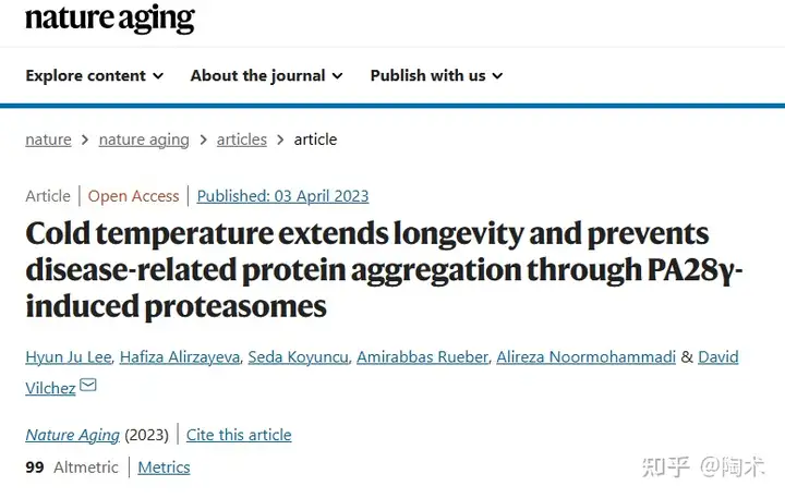 并且,低温还可以改善蛋白质降解的年龄相关缺陷。此外,冷诱导的PA28γ/PSME-3还可以减少C. elegans模型中与年龄相关疾病(如亨廷顿病和肌萎缩侧索硬化症)相关的蛋白质聚集。值得注意的是,将人类细胞暴露于适度的低温(36°C)也可以通过PA28γ/PSME3激活蛋白酶体活性,减少与疾病相关的蛋白质聚集和神经退行性变。这些发现表明,了解冷诱导变化如何影响蛋白质聚集可能有助于开发治疗神经退行性疾病的新方法。让我们一起期待后续的进展吧~