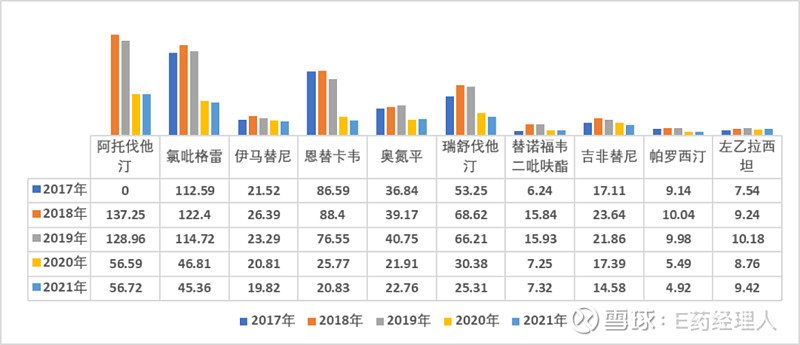 如果原来市场规模较大,通常也会和原研药一样,发生市场规模和市场份额双双下降。只有极个别产品如乐普的阿托伐他汀,在2021年重新回升到2019年的市场规模。