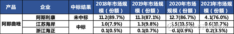 阿那曲唑片国采后相关厂家市场规模(亿元)及市场份额变化