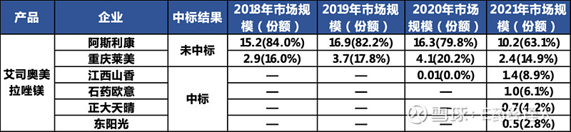 艾司奥美拉唑镁国采后相关厂家市场规模(亿元)及市场份额变化