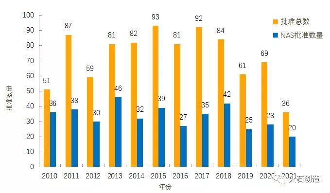 图1:2010—2021年FDA药物批准数量变化情况