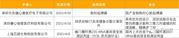 表6:2021年4月获批上市的创新医疗器械