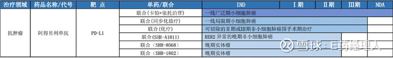 值得注意的是,除了卡瑞利珠单抗,恒瑞在研管线中还有一款PD-L1阿得贝利单抗以及一款PD-L1/TGF-β双抗SHR-1701在开发。其中阿得贝利单抗有6项适应证在研,全部为联合疗法,联合卡铂+依托泊苷用于治疗一线广泛期小细胞肺癌的适应证上市申请已经获受理,联合化疗用于一线局限期小细胞肺癌和可切除的Ⅱ期或Ⅲ期非小细胞肺癌围手术期治疗两个适应证进行到了III期临床。