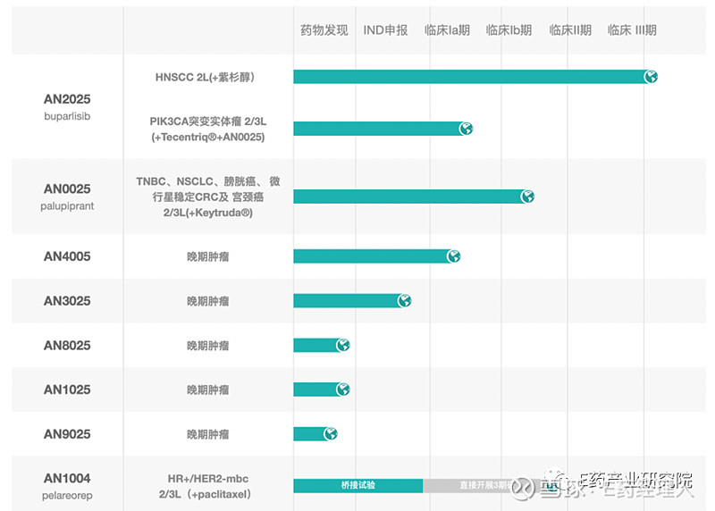 目前,阿诺医药的产品管线涵盖7种抗肿瘤候选药物,其中有3款药物处于临床阶段:,AN2025获得FDA的快速通道资格,期望可成为治疗复发性或转移性HNSCC的同类首创药物,正在开展全球多中心的III期临床试验;AN0025处于临床阶段,是有潜力成为同类首创的用来调节肿瘤微环境的EP4拮抗剂;AN4005是自主研发在临床阶段上进展最快的候选药物,是一款有潜力成为同类首创的可口服小分子PD-L1抑制剂。