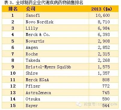 代谢疾病领域,全球前几名厂商均在糖尿病领域有充分的布局,如赛诺菲(Sanofi)、诺和诺德(NovoNordisk)、礼来(Lilly)为全球三大胰岛素巨头,默克(Merck&Co.)则凭借口服降糖药捷诺维成为抗糖尿病领域的新星。