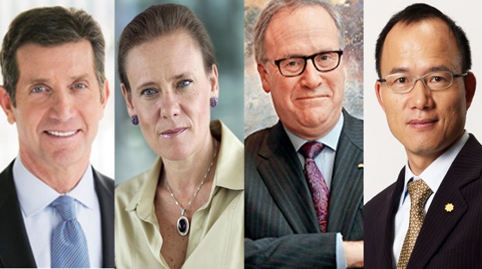 图:(从左至右)强生集团总裁兼首席执行官亚历克斯·戈尔斯基;默克雪兰诺全球总裁兼CEO葛丽鹤;美国礼来制药董事长、总裁兼首席执行官李励达;复星集团董事长郭广昌