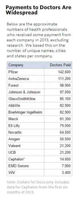 2014年12月19日,美国联邦政府披露了一份报告,详细介绍美国各大药企和医疗设备生产商是怎样给医生钱的。