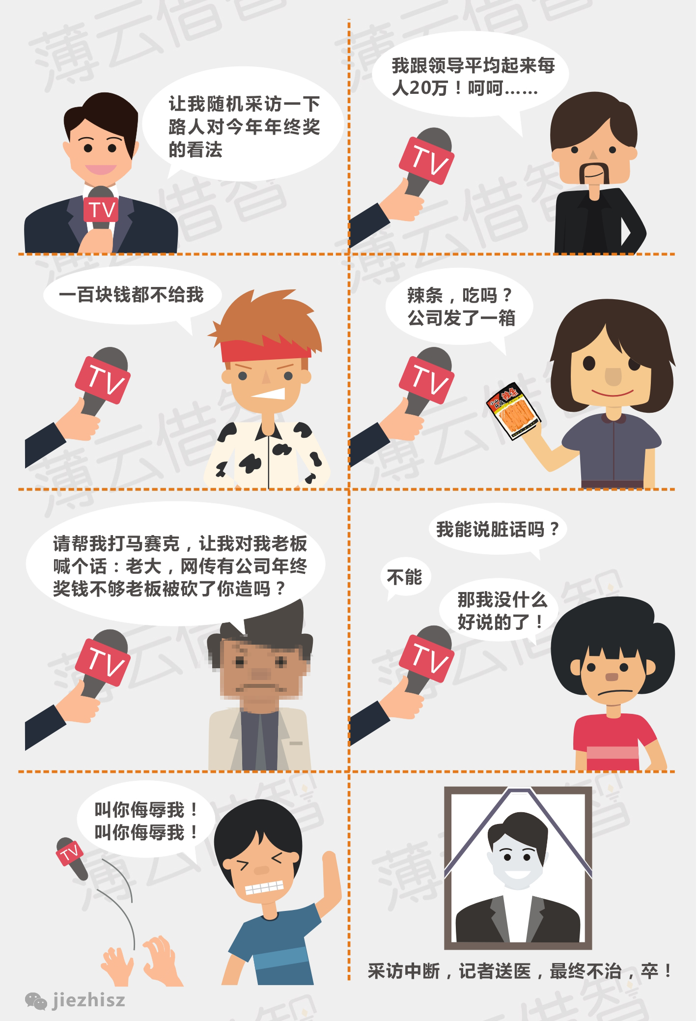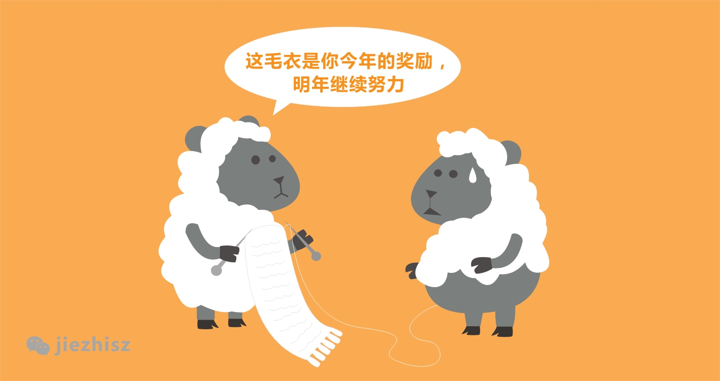 从前有只羊,每天干8小时的活。有一天主人告诉它:多干活有奖励。于是羊每天干10小时。此后主人开始把它身上的羊毛剪下三分之一。年底了,主人给它织了件毛衣,然后告诉它:“诺,这是你今年的奖励,明年继续努力!”羊很生气,把它的故事写成童话,起个名字叫:“年终奖”。