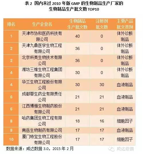 截止于2015年2月2日,咸达数据3.0监测的数据显示,超过三分之一的生物制品生产批文(总批文数1889条)未过新版GMP(2010年)。其中,超过四分之一的疫苗类批文(总批文数327条)未过新版GMP(2010年),超过一半的血液制品(总批文数409条)批文未过新版GMP(2010年)。