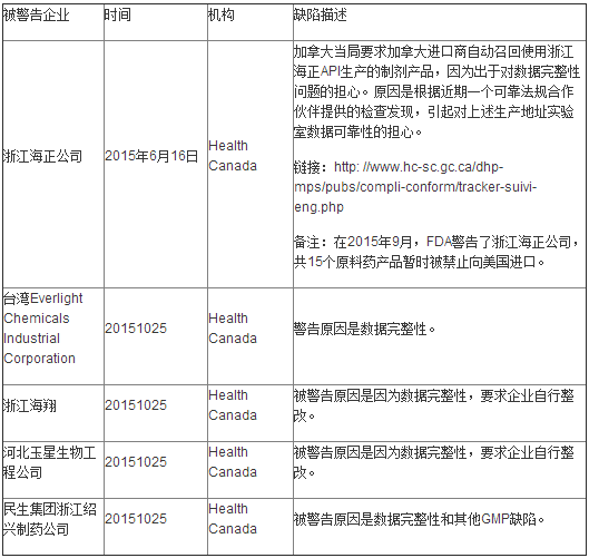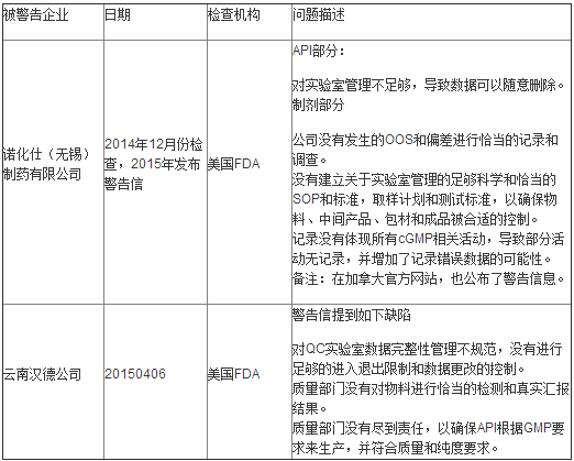 本文数据来源主要来自FDA警告信数据库、欧盟 GMP检查数据库和加拿大官方检查数据库。对于某个企业被多个官方机构警告的情况,只在其中一方官方机构数据库的案例中介绍。 第一部分:欧盟检查失败案例分析 第二部分:FDA检查失败案例分析 第三部分:加拿大官方警告案例解析 第四部分:原因分析 根据以上信息,可以看出,中国制药企业国际认证失败的原因,主要集中在如下四点。 第一点.数据完整性问题。如果要评选中国制药企业年度热词,估计数据完整性肯定可以入选。大部分企业的缺陷中,都有这一条。在2015年12月1日,中国2010版GMP附录《计算机化系统》也要生效,从这一条看,数据完整性问题,国内监管也会越来越严格。 第二点.厂房设计问题的问题。触犯类似缺陷的企业,主要是无菌药品生产企业。很长一段时间,国内GMP检查有一种庸俗的做法。检查官即使发现企业有厂房设施方面的缺陷,为了避免企业整改所产生的大量成本,而避免提出类似条款。久而久之,很多错误的设计理念和施工做法,就被中国制药人所固话。本来是错误的,看的久了,反倒认为是对的。例如无锡积大公司和珠海联邦的问题,都涉及硬件问题。 第三点.严重诚信问题。凡是触犯了这一条的,基本上毫无成功的可能。例如山东济南金达制药和湖州葵花药业公司,都涉及严重失信问题。 第四点.整体质量体系运行水平不符合要求。2015年10月份,英国MHRA刚刚取消了天津GSK公司的GMP证书。从问题本身性质看,好像不严重。但是问题拖了10年不解决,因此说,这个企业质量体系运行是有严重问题的。 总之,希望上述这些惨痛案例可以为大家敲响警钟,为中国制药企业的未来国际之路,有所裨益。 内容来源:CPhI制药在线作者:高海燕