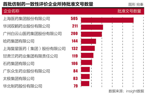 据insight数据,此次入选首批一致性评价品种批文最多的企业分别是上海医药集团、华润双鹤药业、广药白云山医药集团、哈药集团有限公司、上海复星医药,批准文号数量分别是505、211、200、144、132个。若2.67万个品种都做一致性评价的话,预计花费1000亿元。