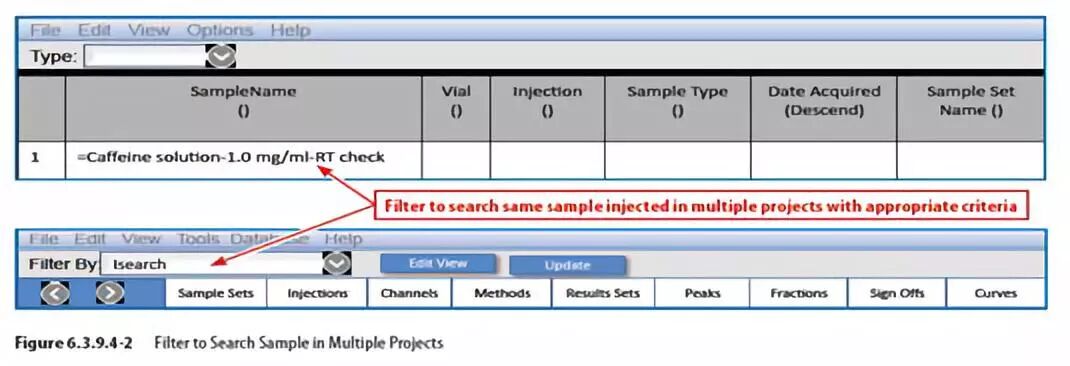图15 典型的结果审计跟踪 筛选器还可以用于从大量数据中搜索所需信息。图16代表筛选器搜索在多个项目中的样品进样。对于旧系统在功能有限的情况下,复核人应在纸质上签名并印章结果并按照质量单位政策复核电子数据。如果结果是电子发布的,复核人在审核后对结果进行电子签名并锁定签名文件。如果它将被用于任何调查目的,当电子数据被认为是最终的数据,质量单位必须按照公司的政策审查电子数据。一旦打印的数据被审核过,原始电子数据应该仅用于参考,不可更改。对批准的数据的任何修改都需要证明。