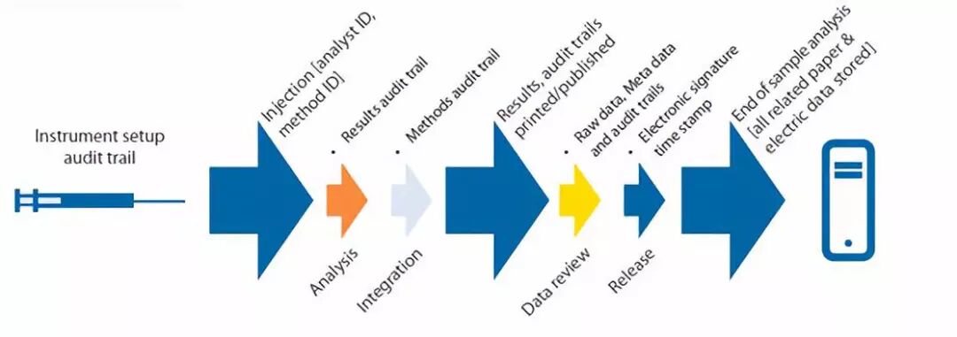 ii. 进样序列:通过一个系列的命令让样品排队依次进行检测 质量部门在这个阶段的监控和审核重点是: ✔批准软件系统结构; ✔定义序列生成和修改的规则; ✔样品检测过程中,方法参数修改的控制; ✔数据采集之后,复制,移动,和重命名数据文件的规则 系统的审计追踪应能抓取: ✔序列名称和编号; ✔修改的原因 ✔分析员名字; ✔每个样品的方法 ✔产品名称; ✔序列执行前的第二人复核(建议) 以下情况也需要有SOP规定,并在功能要求中列入: ✔修改或执行部分序列; ✔仪器至相连电脑在传输过程的数据丢失; ✔序列开始后修改方法参数; ✔什么时候可以放弃序列,放弃后序列的可追溯性; ✔在序列开始后增加样品的标准; ✔色谱进样之间断电管理; ✔对于预检测,系统检查进样或单针进样的控制; ✔能够识别使用以上方法故意损害数据的行为