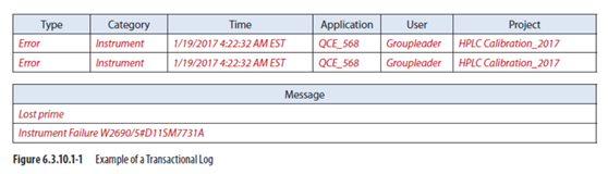 理想情况下,对软件和产品有影响的错误消息的分类将在软件开发和供应商验证期间合并。一些标题很关键的错误(例如,电缆断开、连接丢失、通信失败)可能不会在经过验证的审计跟踪中捕获,而是记录在事件日志中。可能很难确认这些类型的消息都是由故意中断引起的,或者对产品质量数据有任何影响。因此有必要是要有适当的控制和程序,以确保真正的停电记录,特别是如果色谱运行受到影响。