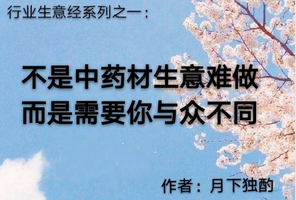 看来,行业之中不是中药材生意不好做,而是时势造英雄!能不能成为这个行业真正的英雄,就要看你是愿意继续守在传统市场受温水煮青蛙般地煎熬,还是愿意开动脑筋、奋起一博主动出击改变现状了!……