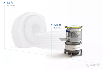 根据其官方的描述,与常规的MRI相比,这台便携式MRI 的重量约为常规高场强MRI的1/10,所消耗的能量约为常规高场强MRI的1/35,价格约为常规高场强MRI的1/20。