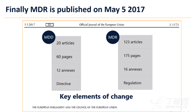 注释:MDR对比MDD,法规要求从原先的20条变为123条,技术文件要求从60页变为175页,种种迹象都表面,MDR法规比MDD指令,难的并不是一点半点