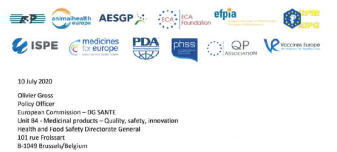 Yours sincerely, on behalf of A3P, AnimalhealthEurope, AESGP, ECA, EFPIA, EIPG, FQPA, ISPE, Medicines for Europe, PDA, PHSS, and Vaccines Europe.