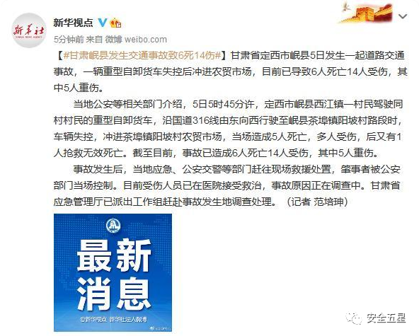 10月5日甘肃省定西市岷县道路交通事故造成6死14伤