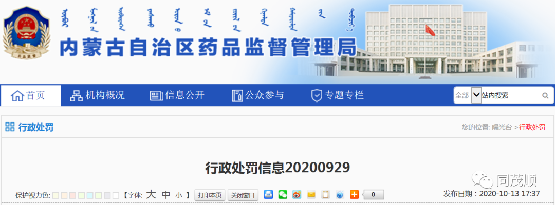 ▍10月13日,内蒙古自治区药监局发布两起行政处罚信息:涉及罚款、责令解聘质量部长、质量负责人、没收违法行为发生期间自本单位所获收入,并处所获收入百分之十以上百分之五十以下的罚款,十年直至终身禁止从事药品生产经营等活动,详情如下:
