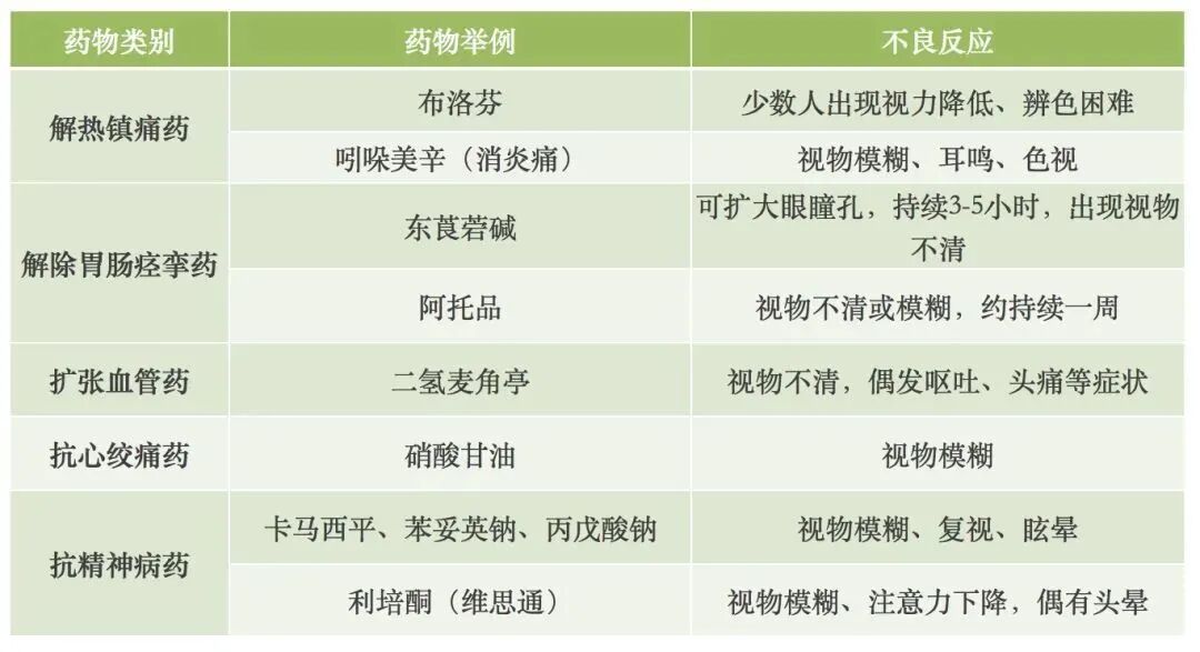 如果开车时视力受损其严重后果可想而知。下列药物均可引发视力降低、视物模糊或复视等症状,开车前应谨慎服用。