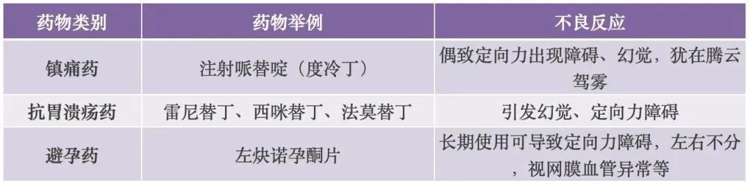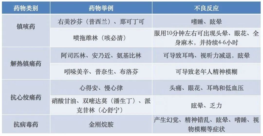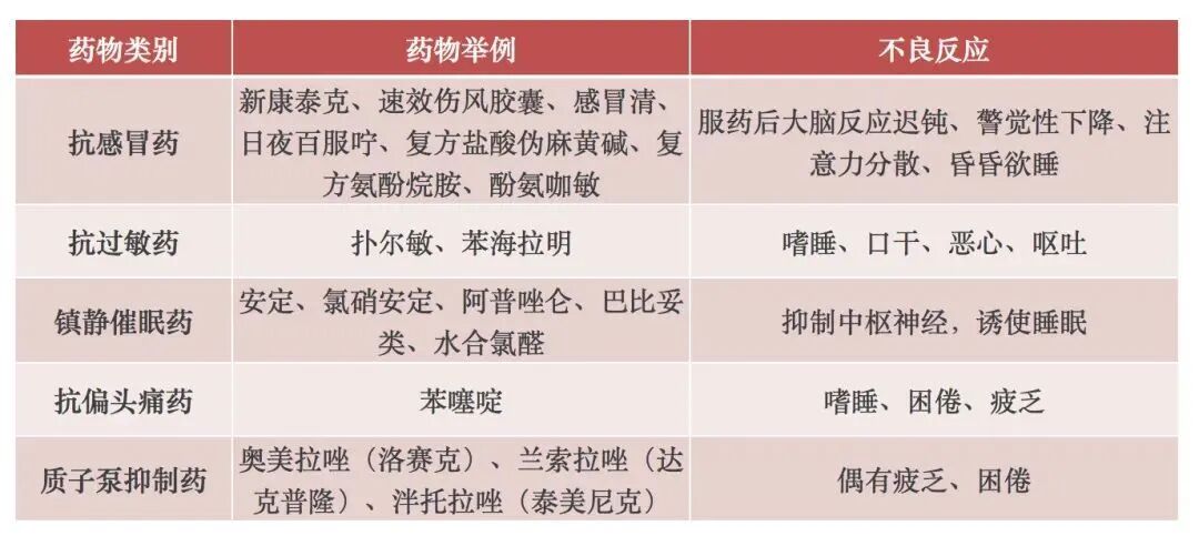 驾驶车辆过程中最重要的就是精神集中,如果服药后出现眩晕或幻觉,势必会影响驾车安全。具有此不良反应的药物主要包括以下几类: