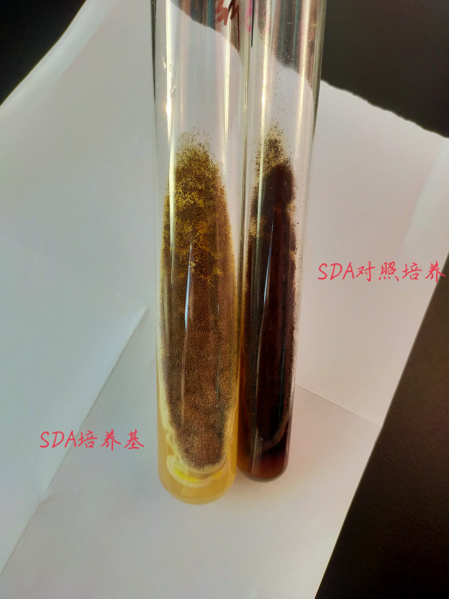 如图,各位大佬!大家看下,黑曲霉传代用了SDA培养基和SDA对照培养基,同样的培养时间,培养温度,但是培养出来的黑曲霉确不一致,对照培养基黑曲霉是黑色孢子,SDA培养基培养出来的黑曲霉发灰,有些还是新这种黄色的。这是什么原因?
