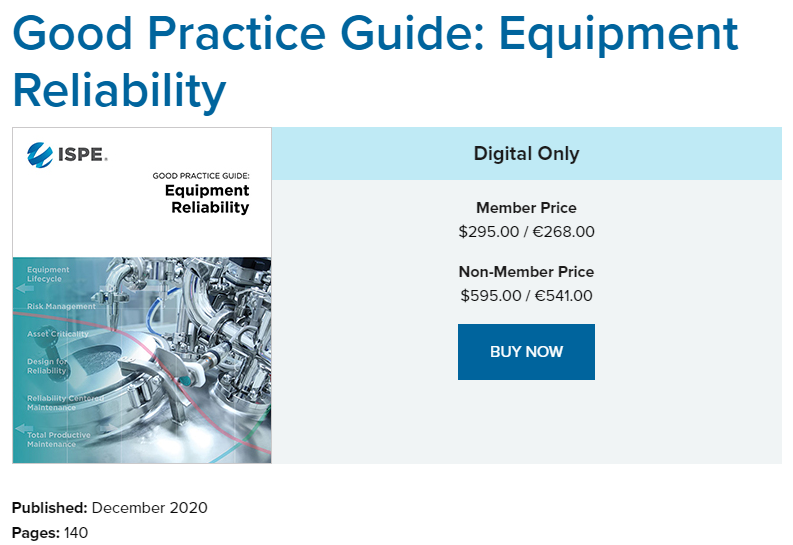 近日,ISPE发布了新的优良实践指南:设备可靠性。该指南的目的是为设备可靠性概念的应用提供指导,以在设备生命周期各个阶段中,系统地、主动地提高设备可靠性。