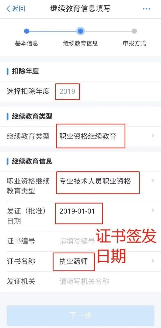 4.ÒÀÕÕÒªÇó½øÐÐÌôÑ¡Ìîд£¨¼ÌÐø½ÌÓýÀàÐÍÌôÑ¡¡°Ö°Òµ×ÊÀú¼ÌÐø½ÌÓý¡±£¬¼ÌÐø½ÌÓýÐÅÏ¢ÌôÑ¡¡°×¨Òµ¼¼ÄÜÈËÔ±Ö°Òµ×ʸñ¡±£¬Ö¤Ê鳯ºÅÌôѡΪ¡°Ö´ÒµÒ©Ê¦¡±£©£»È»ºóµã»÷ÏÂÒ»²½¼´¿ÉÍê³ÉÉ걨ÁË¡£