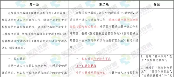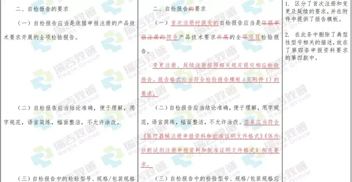 医疗器械注册自检工作规定--两版征求意见稿对比
