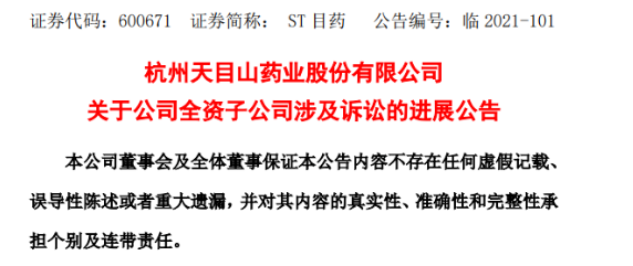 [药界资讯] 天目山药业再传负面消息,一审判决偿还货款860余万