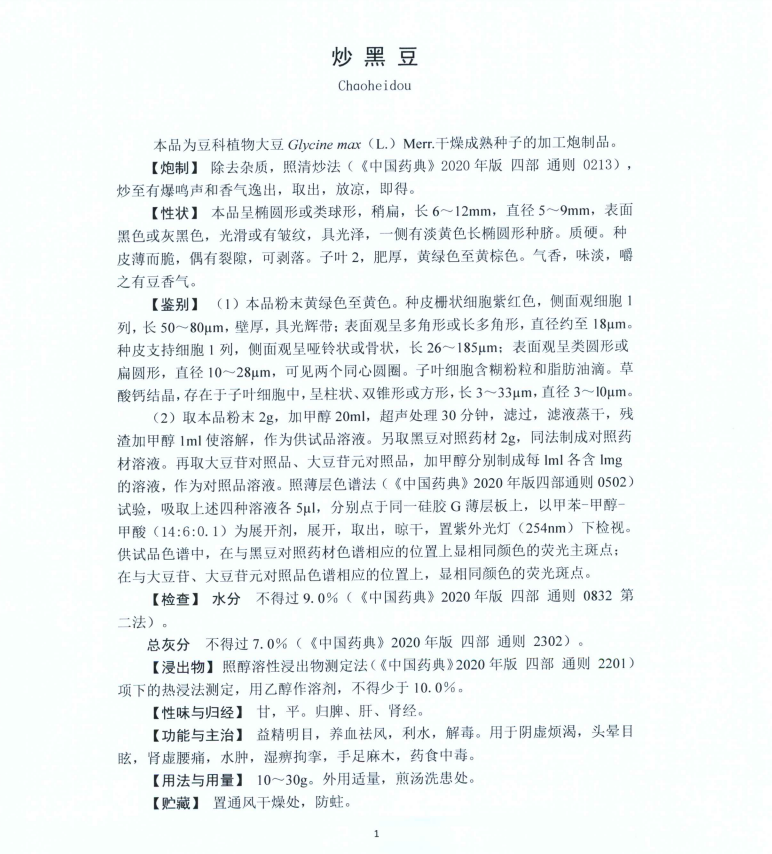 附件2: “炒黑豆”等8个中药饮片炮制规范标准正文