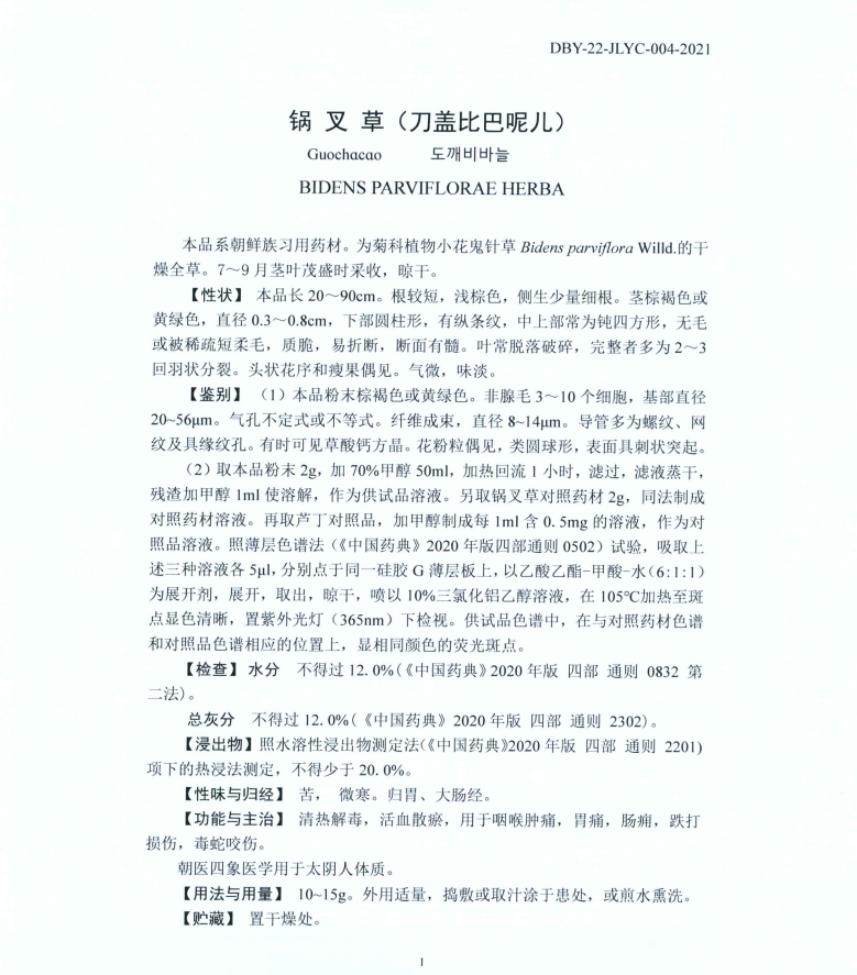 附件1:吉林省中药饮片炮制规范标准目录
