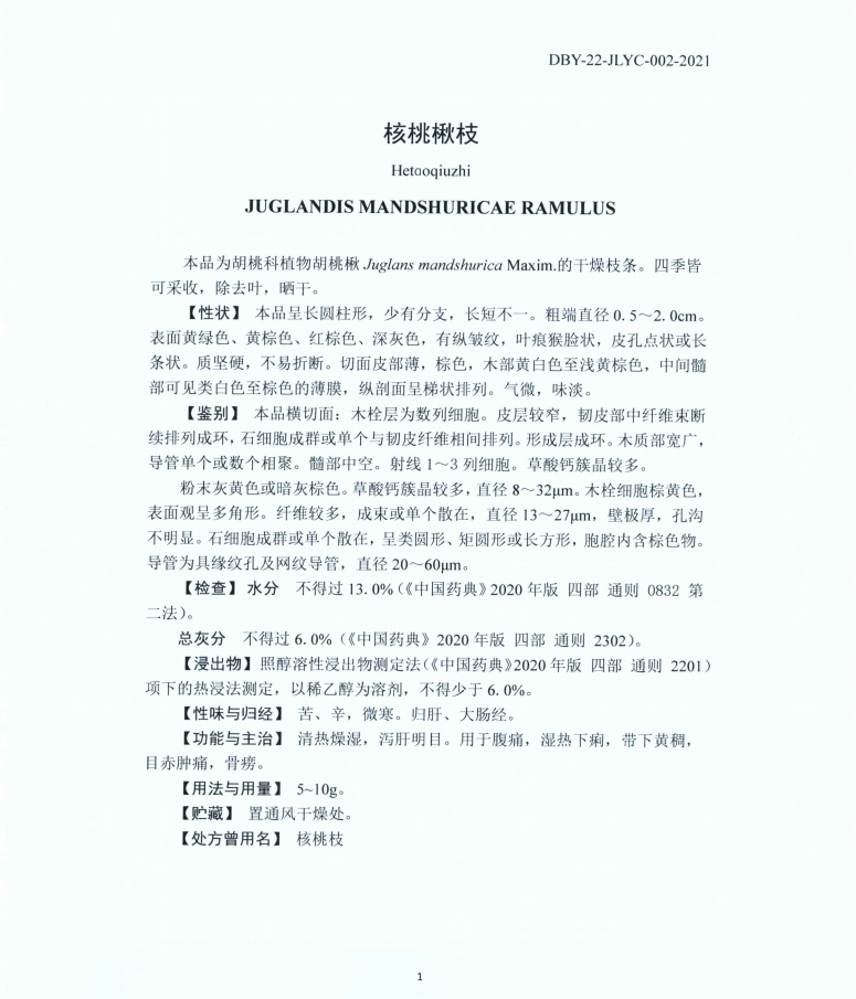 附件1:吉林省中药材标准目录 附件2: “核桃械枝”等3个中药材标准正文