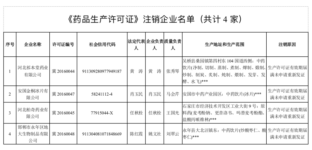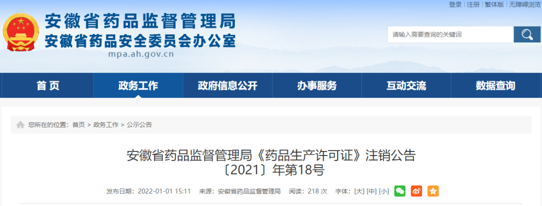 2021年12月31日,安徽省、湖南省药监局发布了注销药品生产许可证公告,9家生产企业被注销生产许可证