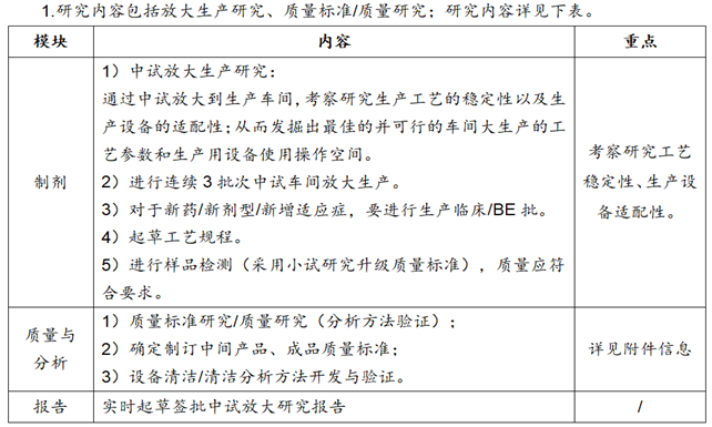 可行批生产研究主要考察包括生产设备调试、技改后的工艺稳定性,以及生产设备的适配性;进行1-2批次;质量检验合格,同时形成可行批报告。