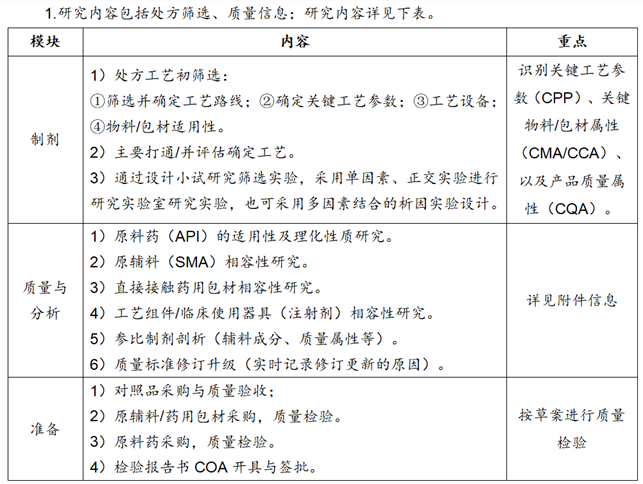 仿制药(制剂)在研发阶段工作可以分为:项目调研、处方研究、小试处方工艺筛选、放大及中试研究、可行批生产研究、工艺验证、注册资料整理、质量标准复核、CDE沟通、注册核查等工作。
