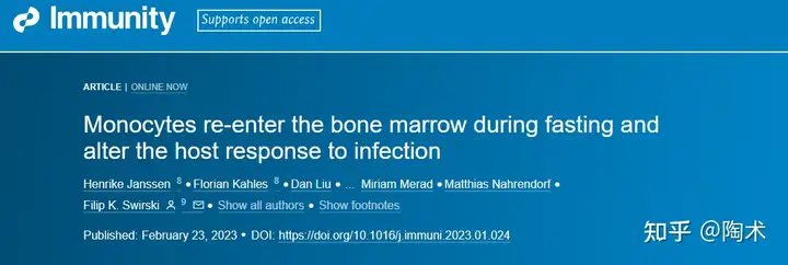 Filip K. Swirski, Monocytes re-enter the bone marrow during fasting and alter the host response to infection, Immunity (2023). DOI: 10.1016/j.immuni.2023.01.024. www.cell.com/immunity/fulltext … 1074-7613(23)00036-5