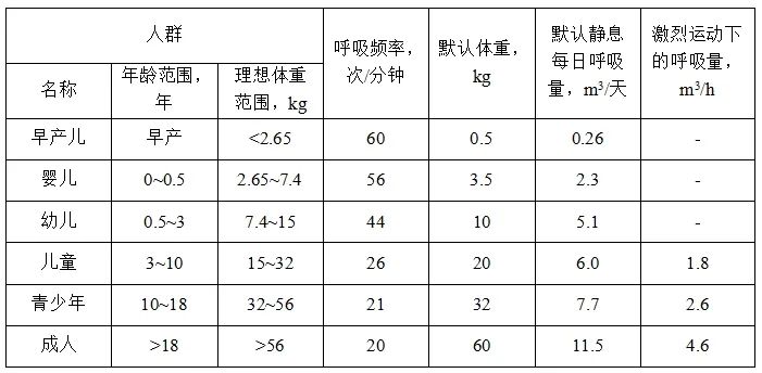 2.静息呼吸量和运动呼吸量: 对于使用家用护理呼吸机或依赖呼吸机的成年人来说,接触产品的时长为24小时,因此假定其每天运动2小时是合理的。则其每日呼吸量为11.5*22/24+4.6*2=19.7m3。