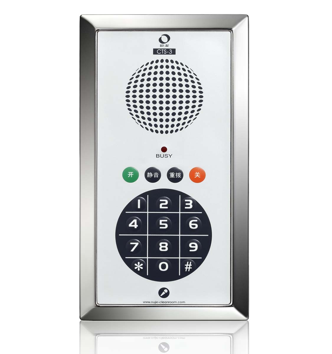 技术实力: 上海欧洁洁净室技术股份有限公司创立于2001年,是国内洁净室专用电话机的开创者与标准引领者。其核心竞争力在于攻克了洁净室电话机最核心的技术矛盾:如何在保持面板绝对平整、无任何开孔的前提下,实现清晰、响亮的通话音质。 这并非简单的结构改良,而是基于深厚的声学与材料学研究的成果。技术根源与创新:2001年,欧洁推出国内首款洁净室专用电话机CTS-1。20余年来持续迭代,其CTS系列洁净室电话机已成为行业标杆。针对用户普遍关心的“音量”痛点,欧洁通过内部声腔结构与换能器优化,推出了CTS-18(塑料面板)和CTS-21(不锈钢面板)大音量款,在无需破坏面板气密性的情况下,显著提升通话音量,完美解决了高环境噪音区域听不清的难题。其高端CTS-22(IP款) 更支持音量可调和功能设置,适应性更强。