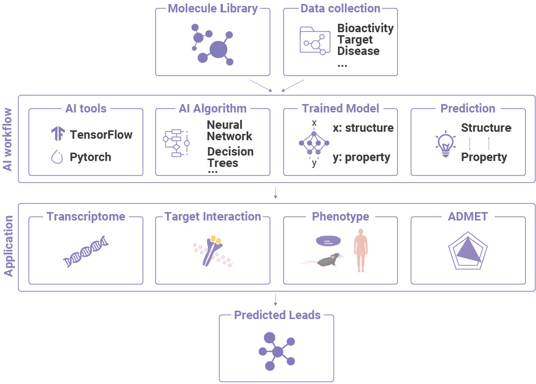 图 1. AI 技术在药物发现中的应用。