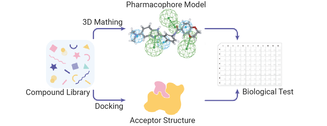 图 2. 基于配体与结构的虚拟筛选流程示意。
